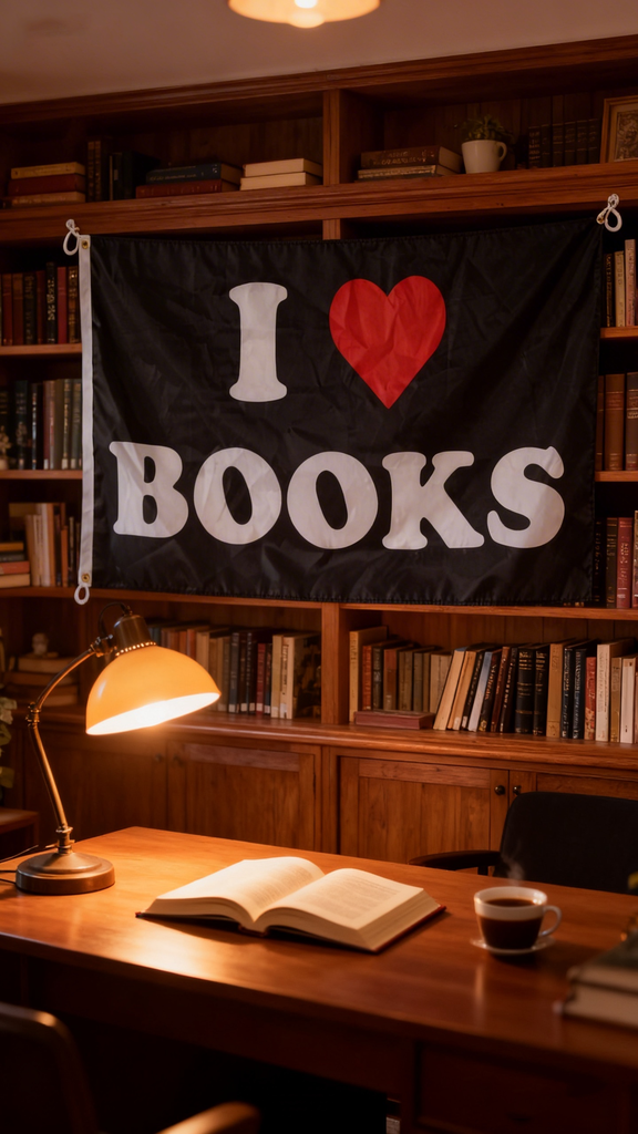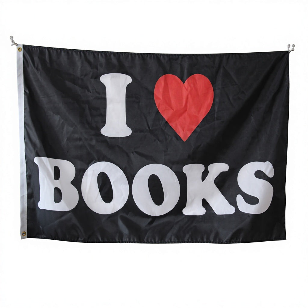 "I Love Books" Flag 3x5ft, Durable Polyester Book Lover Banner, Perfect for Home Libraries, Bookstores & Reading Nooks, Custom Sizes Available