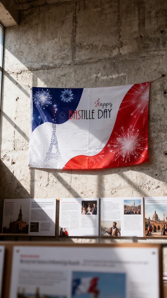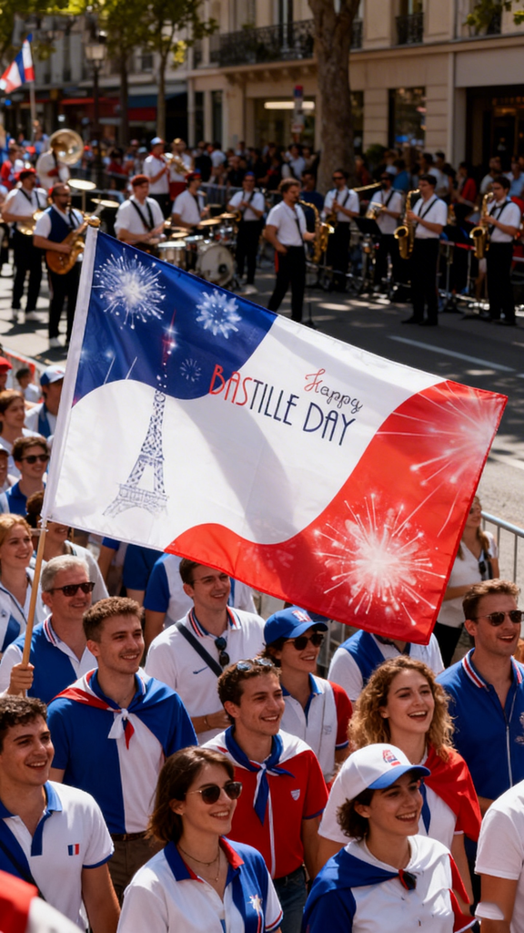 3x5ft Happy Bastille Day Flag, French National Day Polyester Banner with Eiffel Tower & Fireworks, Ideal for French Celebrations & Home Decor, Customizable
