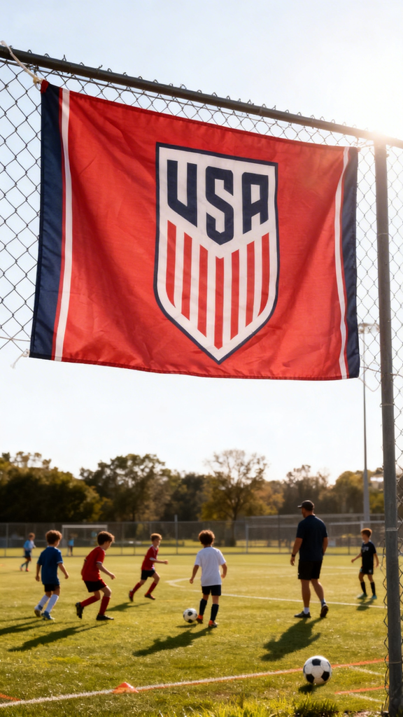 3x5ft USA Soccer Team Crest Flag, Red Polyester Banner with US Soccer Shield Logo, Ideal for World Cup Viewing Parties & Fan Caves, Customizable